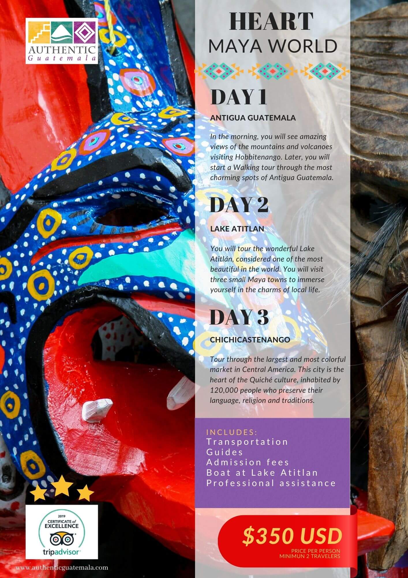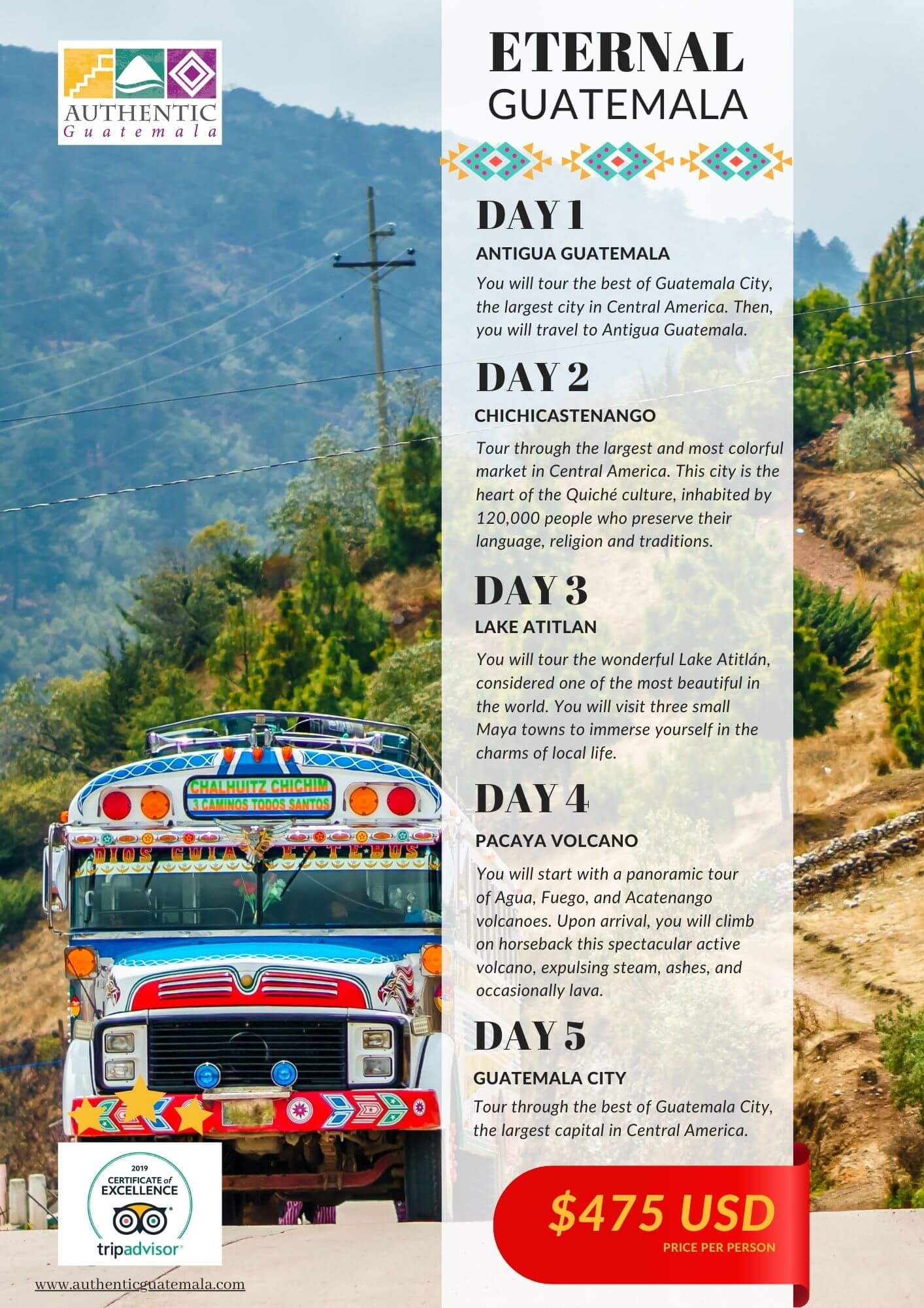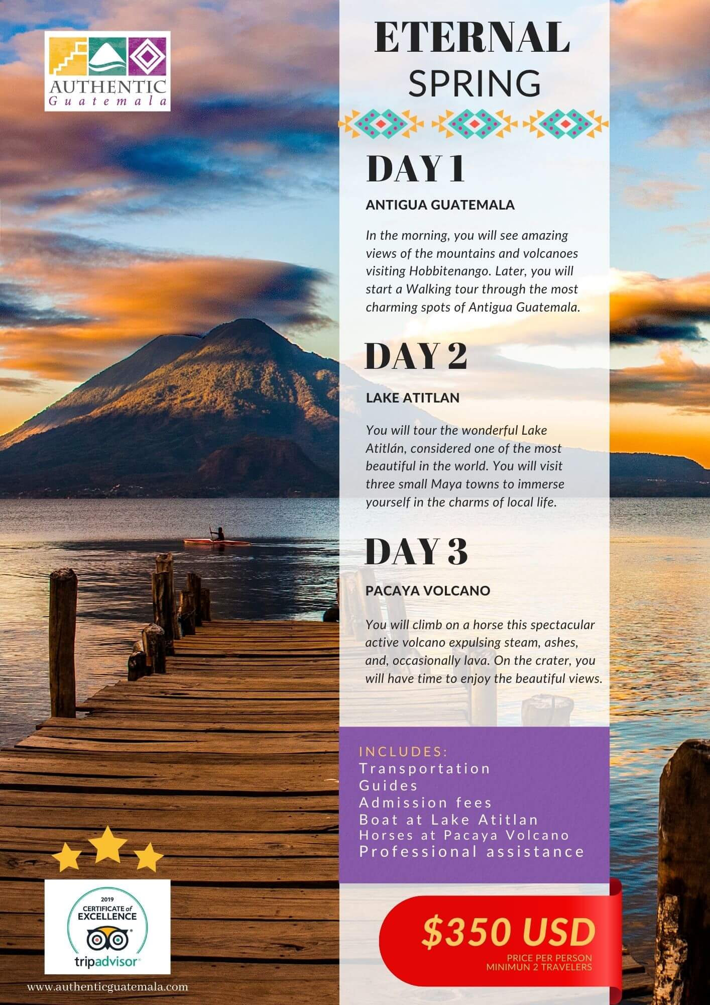 - Group tours in Guatemala City, Acatenango, Lake Atitlan and Tikal
